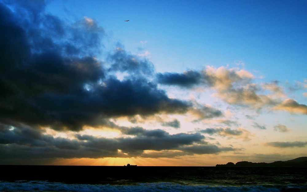 Loved how the Boeing caught the sunlight while the rest of the beach is already in darkness.