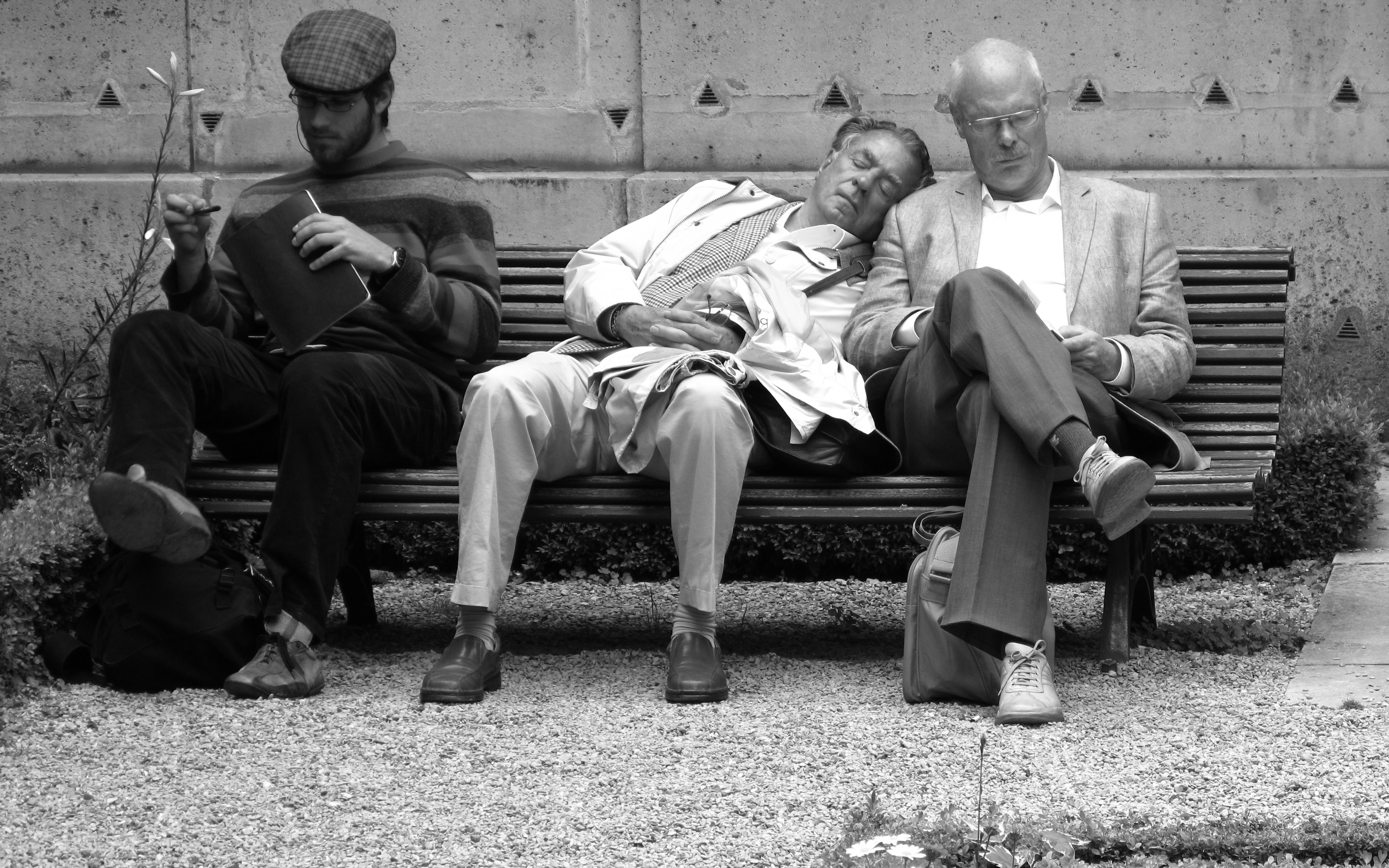 I caught these folks napping in the same park in Paris – I guess the afternoon sunshine made everyone a bit sleepy. Wish it were that warm here, now…