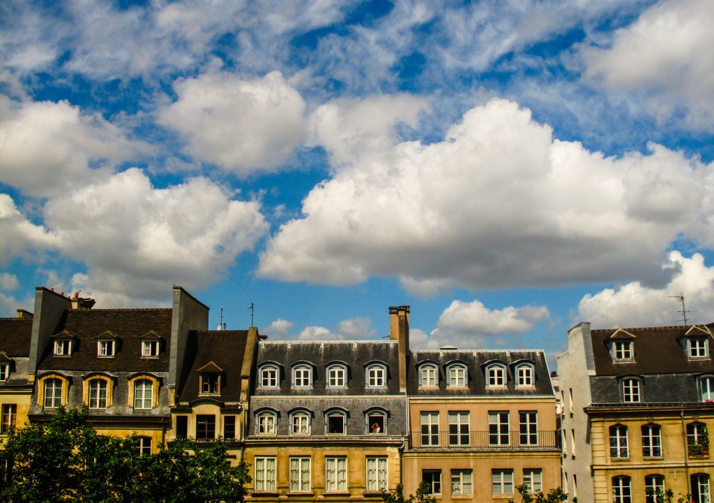So many streets in Paris feature buildings that seem to lean against each other, each one at a different angle.